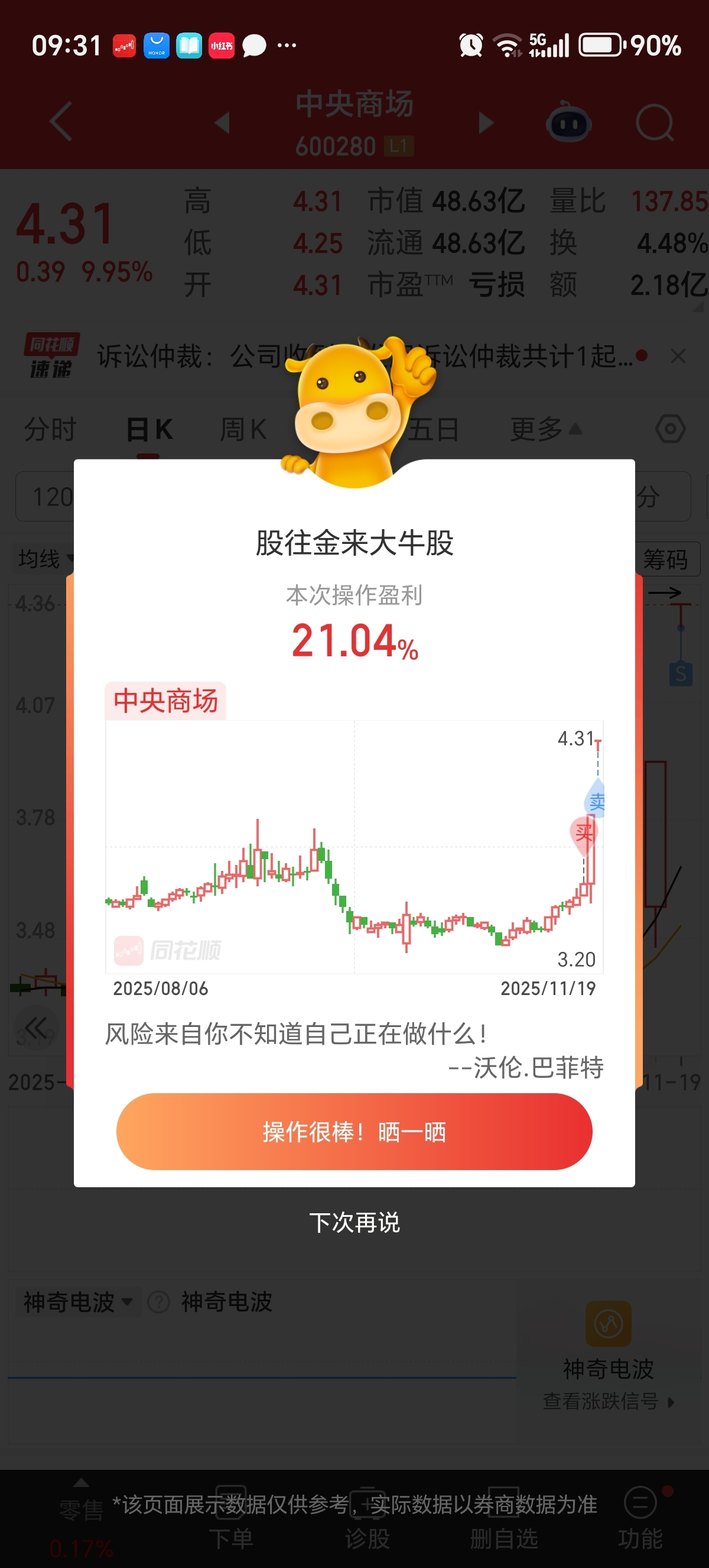 $中央商场(SH600280)$ 热度依旧在,周一继续要支持。