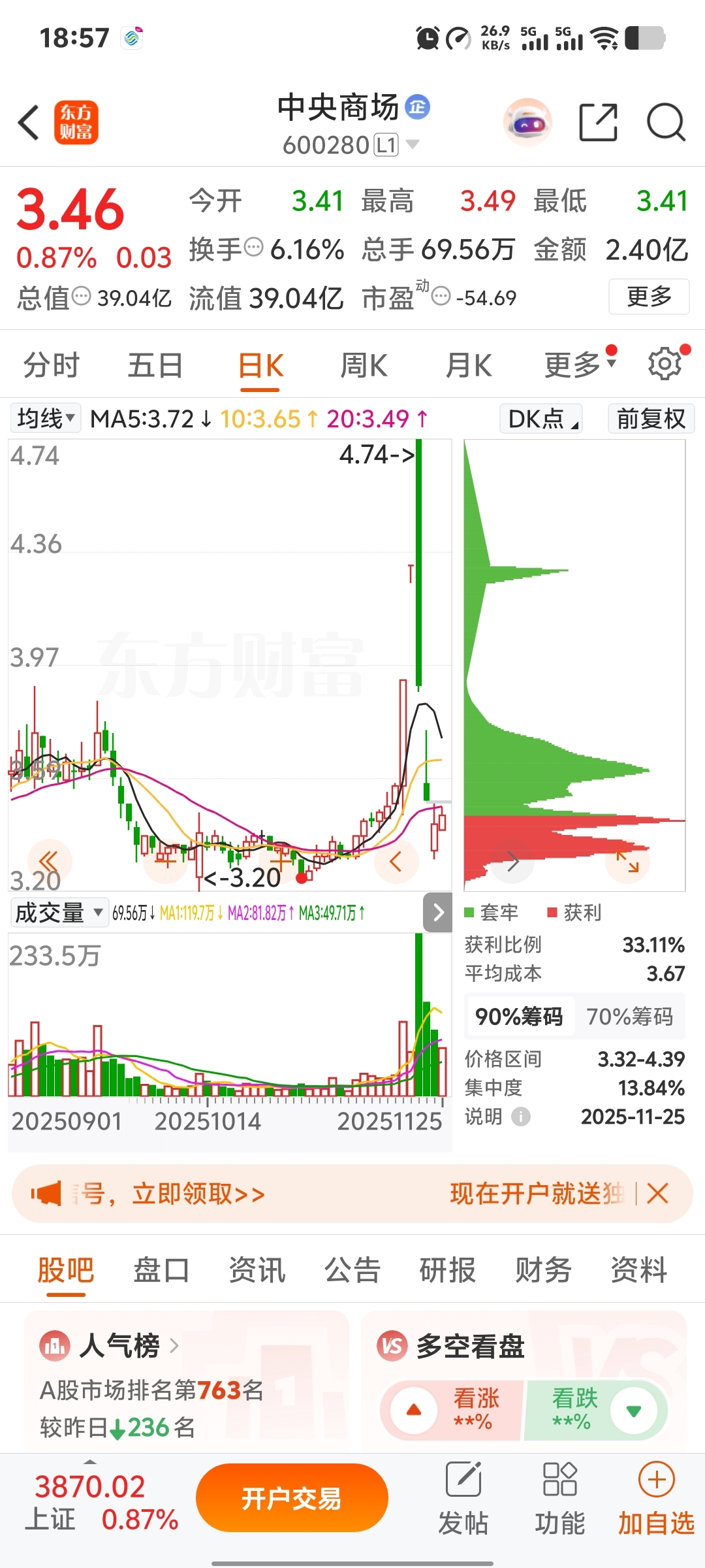 $中央商场(SH600280)$ 密密麻麻的套牢盘