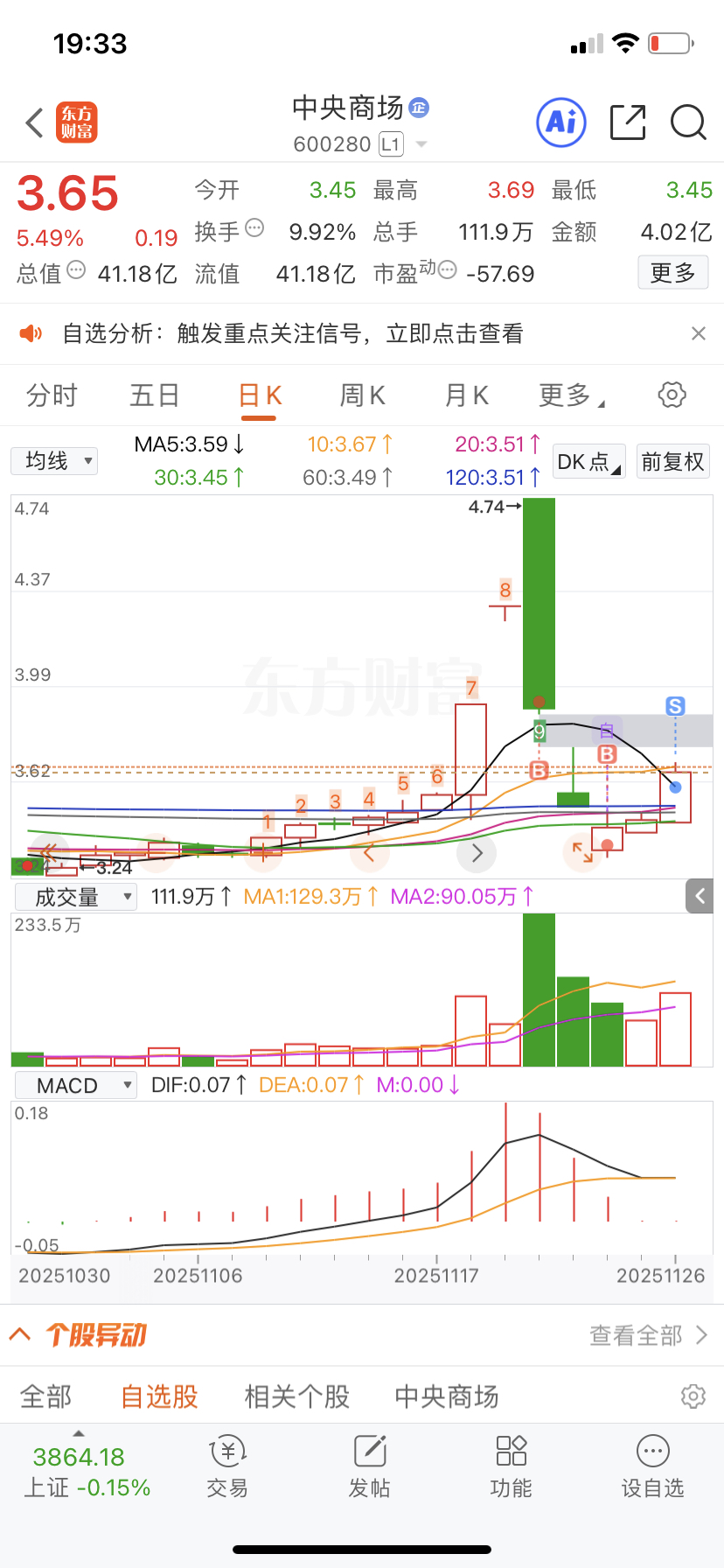 亏了5个点,全清仓了。