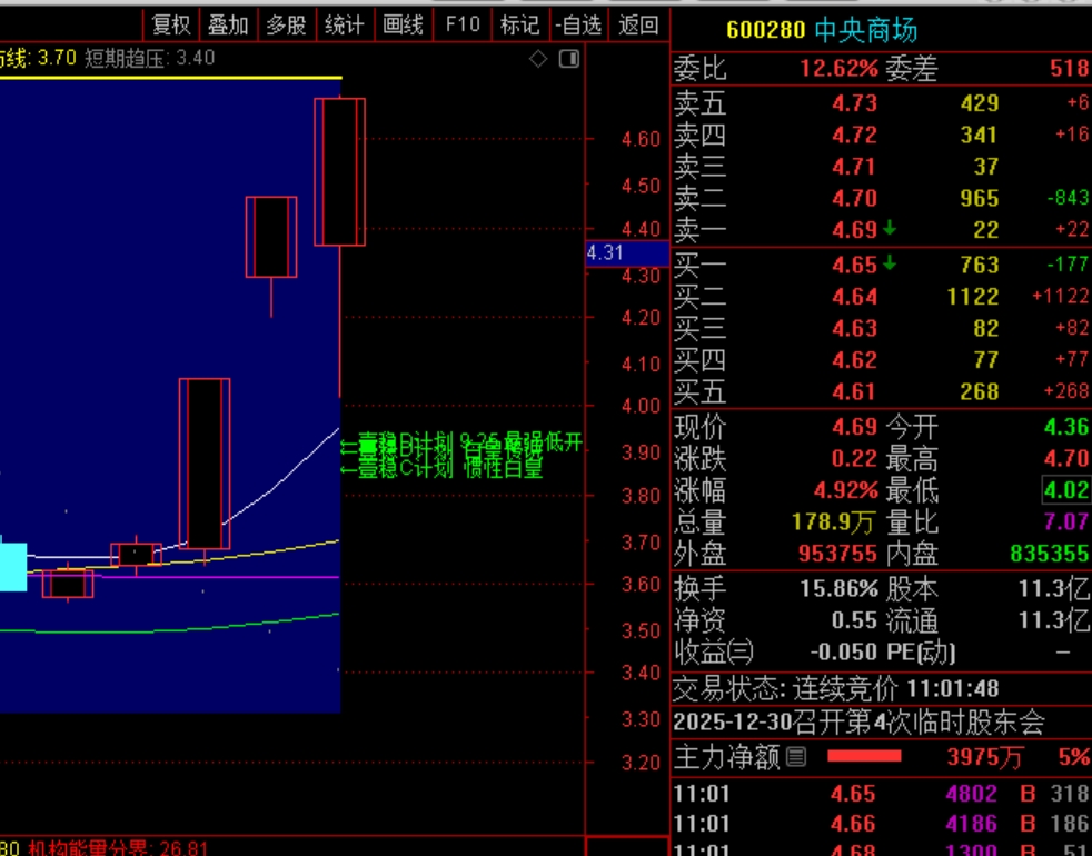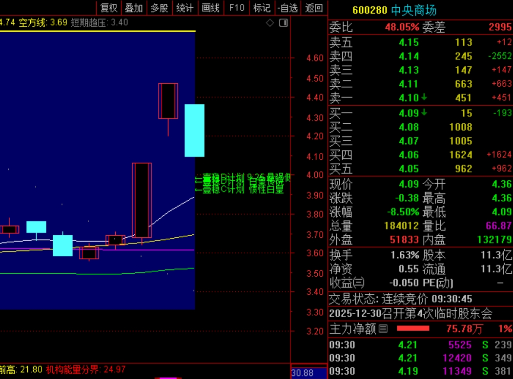 $中央商场(SH600280)$ 中央商场在4块1以下埋伏,具体看分时
