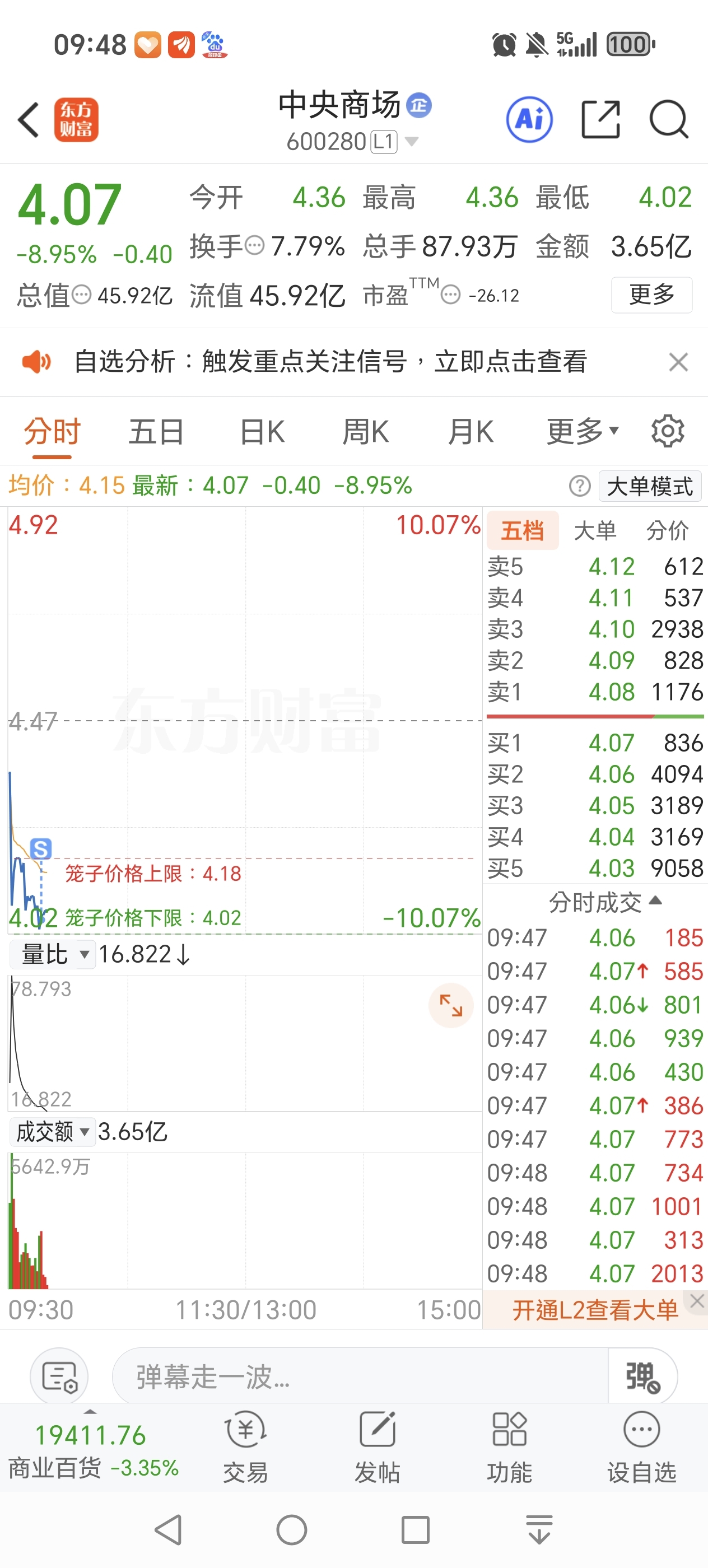 $中央商场(SH600280)$ 卖出了,可以接盘了哈哈