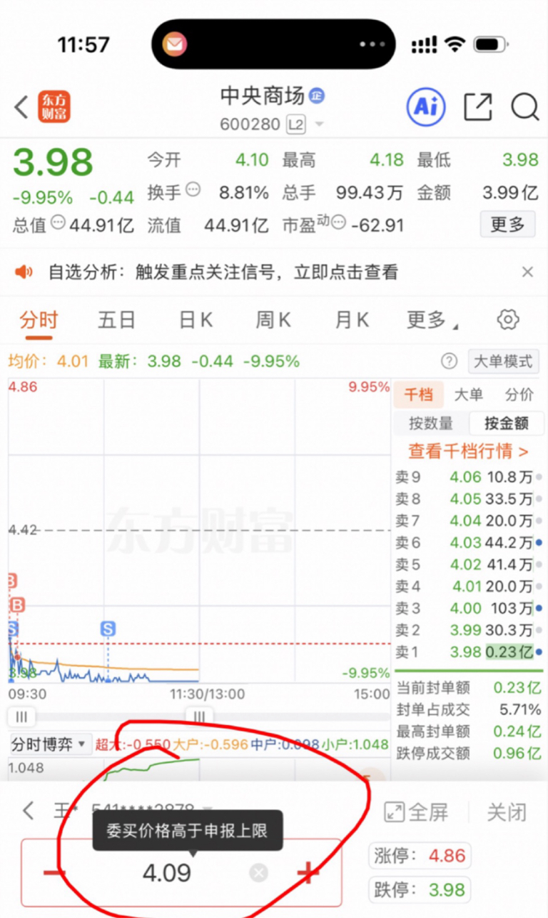 $中央商场(SH600280)$ 什么意思啊,超出申报限制?