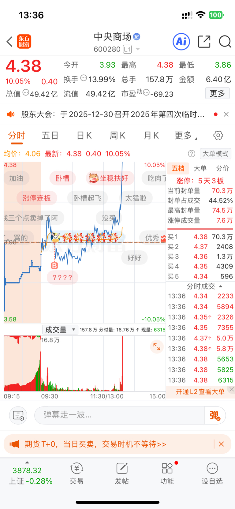 $中央商场(SH600280)$ 终于吃一回,每次都是亏本卖出