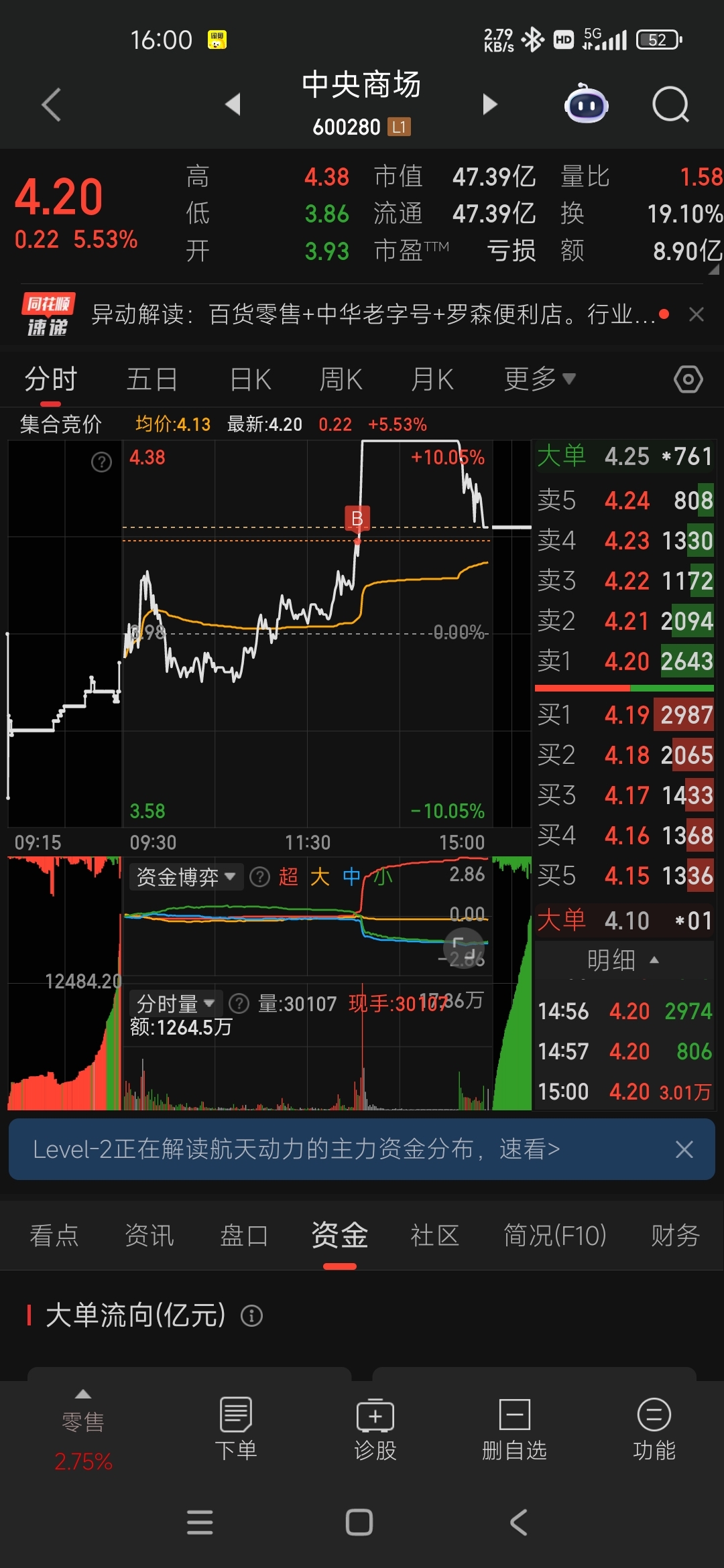 $中央商场(SH600280)$ 白高兴半天