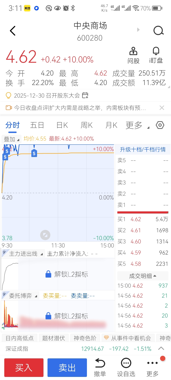 $中央商场(SH600280)$ 今天炸这么多次板,明天怎么走,反正我板上跑了一半