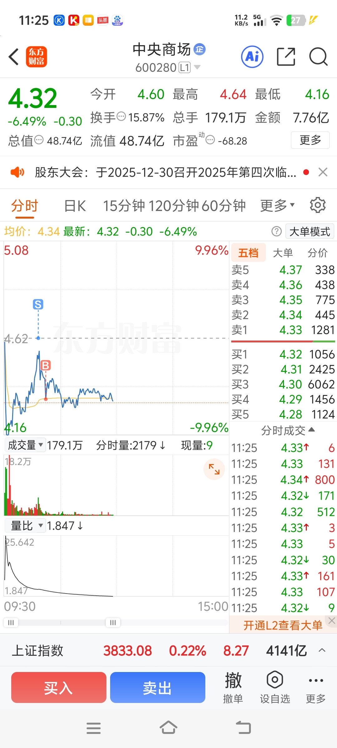 $中央商场(SH600280)$ 草,卖了为何又接回