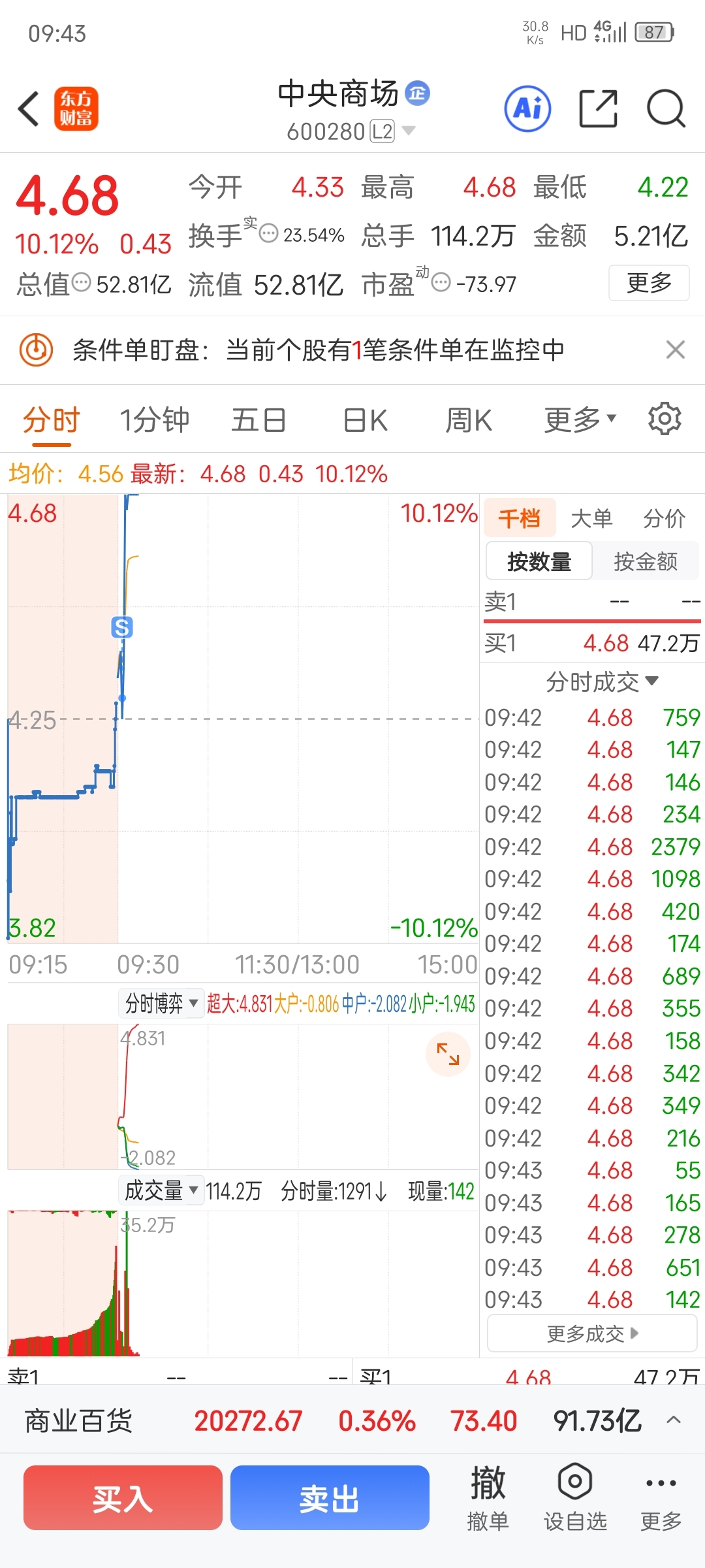 $中央商场(SH600280)$ 格局小了,欲哭无泪