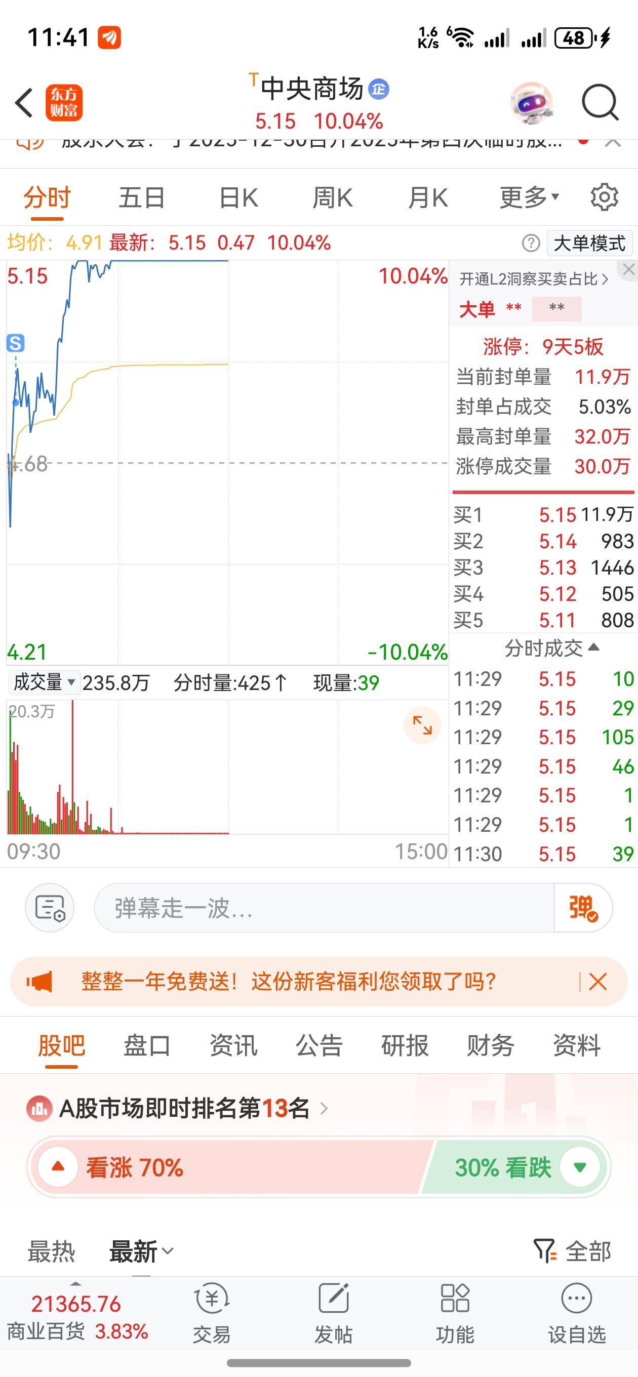 $中央商场(SH600280)$ 啊啊啊,我
