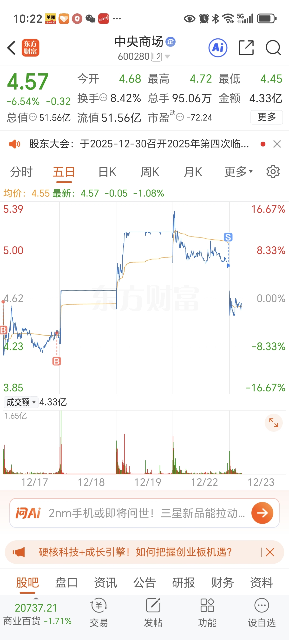 $中央商场(SH600280)$ 挣多挣少都是挣#复盘记录#