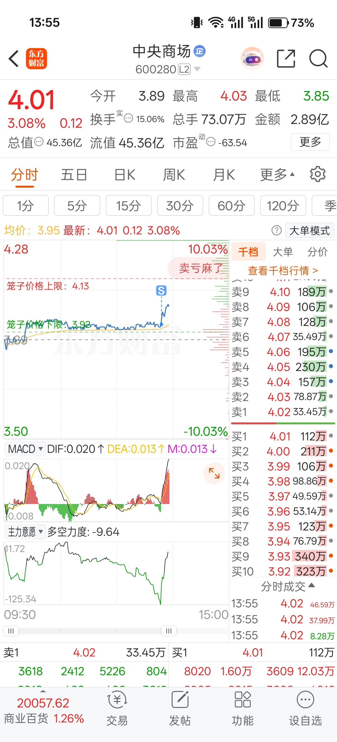 $中央商场(SH600280)$ 你差我那点哟