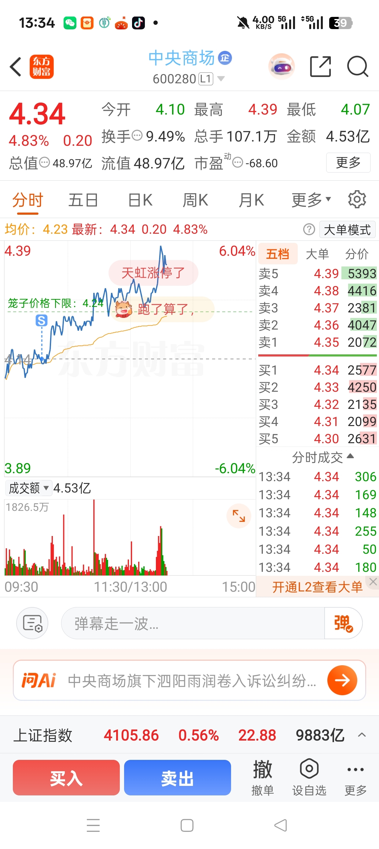 $中央商场(SH600280)$ 今天真是要把腿拍断啊