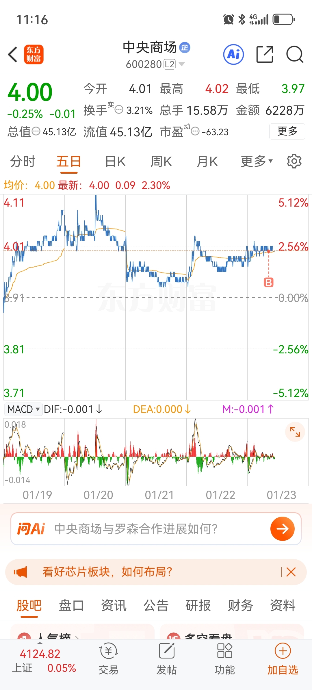 $中央商场(SH600280)$ 过来打野的 能不能让吃点明天早上集合竞价就跑 先谢谢主力了