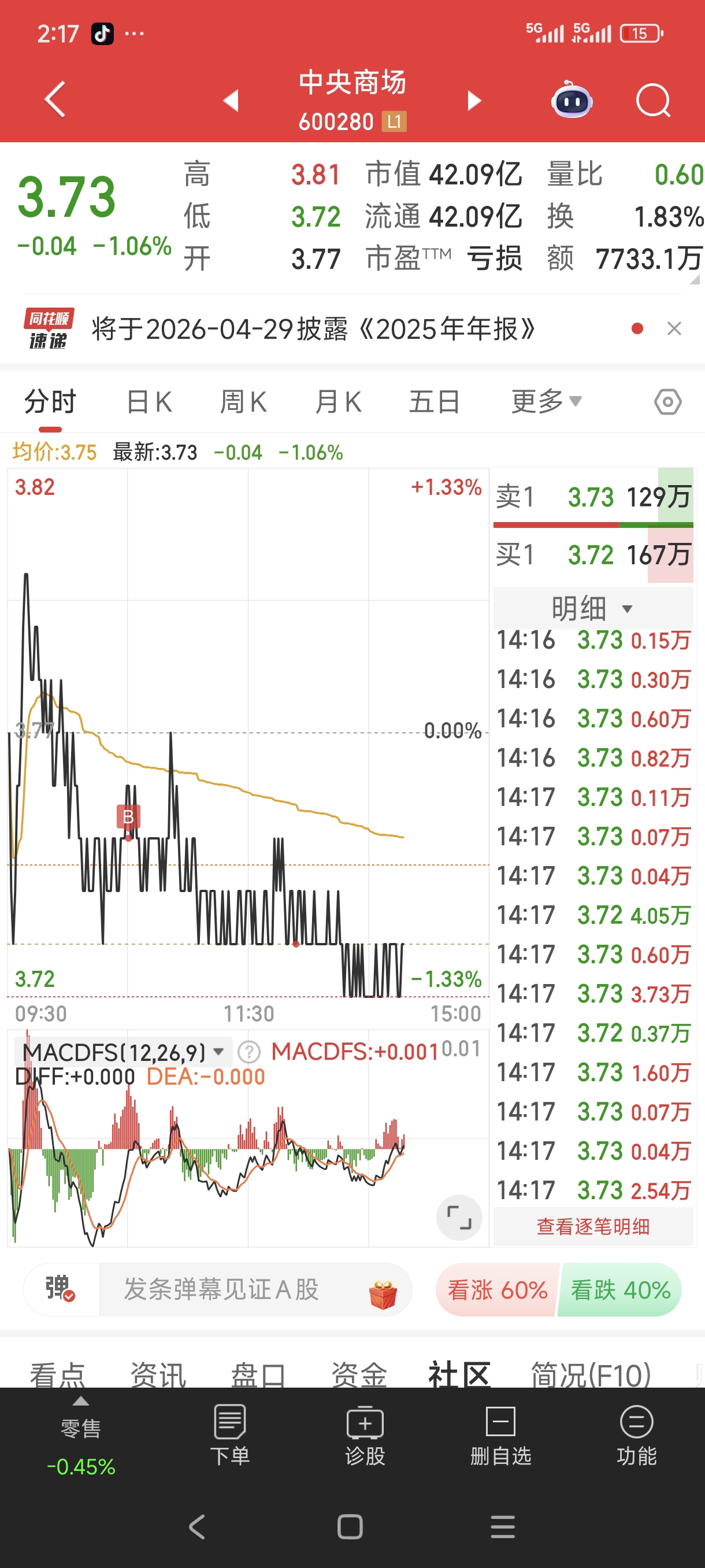 $中央商场(SH600280)$ 兄弟们,别慌,我来陪着你们了。抄底,必须抄底。