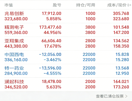 小掌柜持仓精准锚定主线,核心标的盈利持续爆发!精测电子累计收益近50%,主力产品批量进入一线晶圆厂,虽随大盘调整但无风险信号,视为蓄势;兆易创新1月以来大涨超50%且创新高,2025年净利润预增46%,绑定长鑫科技基本面扎实,继续持有;亚翔集成早盘下探后尾盘拉涨7个多点,自2025年10月31日起趋势上行,底部筹码锁仓、主力控盘明显;澜起科技震荡收红,互连解决方案逻辑硬,冲击前高后回踩5日线,待突破;中国西电再次回踩10日线,箱体震荡下绩优属性稳固,无大波动则继续持有;特一药业缩量回落,2025年净利润预增241.55%-339.13%,短期面临前期压力位,暂观后续表现。
