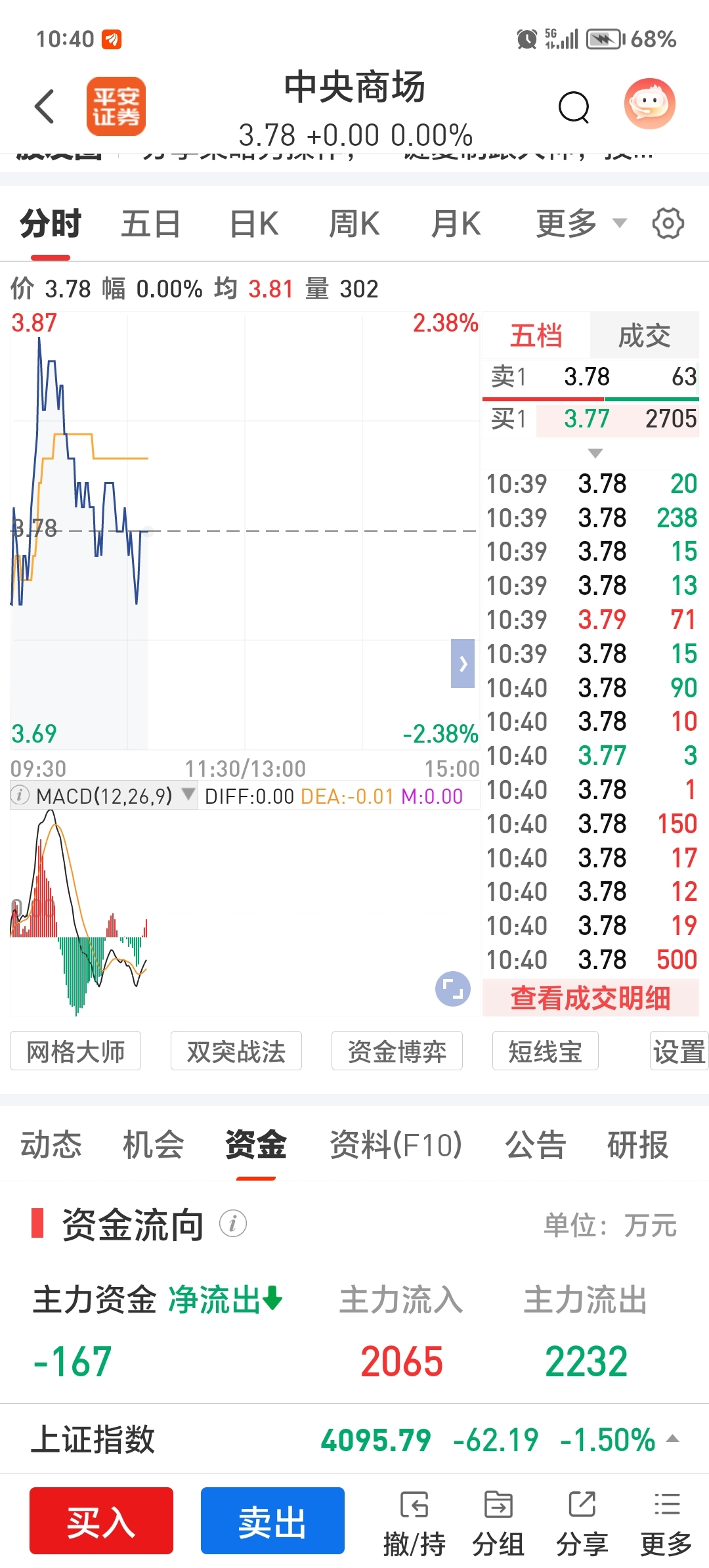 $中央商场(SH600280)$ 主力跑了