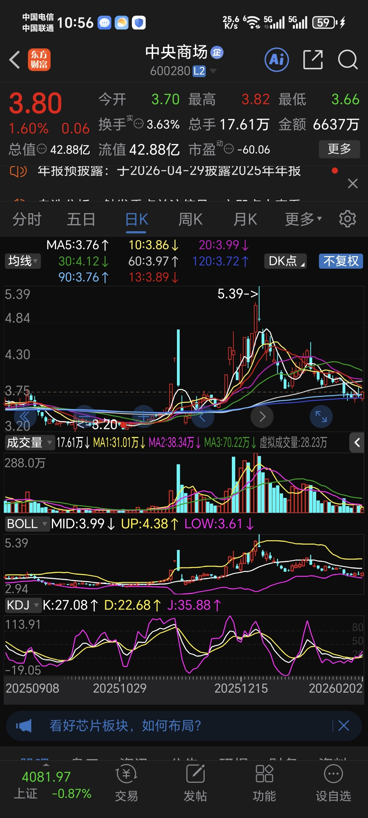 $中央商场(SH600280)$ 站在这个均线上拉扯,不会向上,只会向下