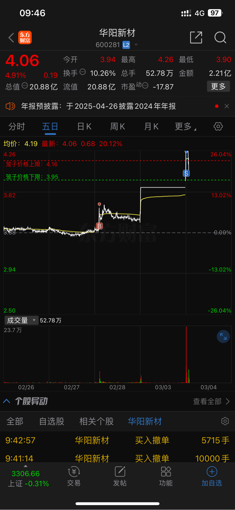 $华阳新材(SH600281)$ 卧槽,还好早上涨停卖了