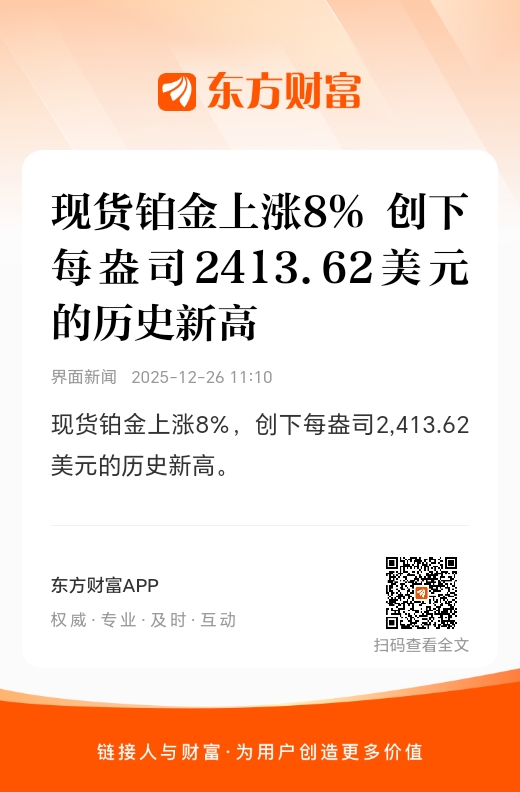 现货铂金上涨8%,创下每盎司2,413.62美元的历史新高。