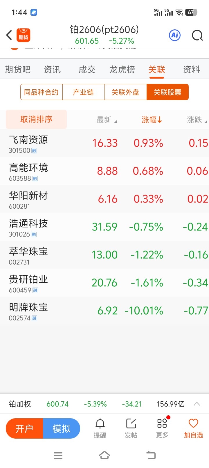 只要跟铂金期货有关联的票都起飞过唯独一天天要死不活的