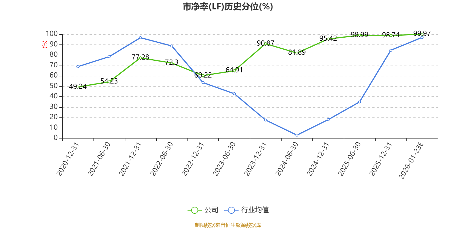 市盈率、市净率为负时,不显示当期分位数,会导致折线图中断。
