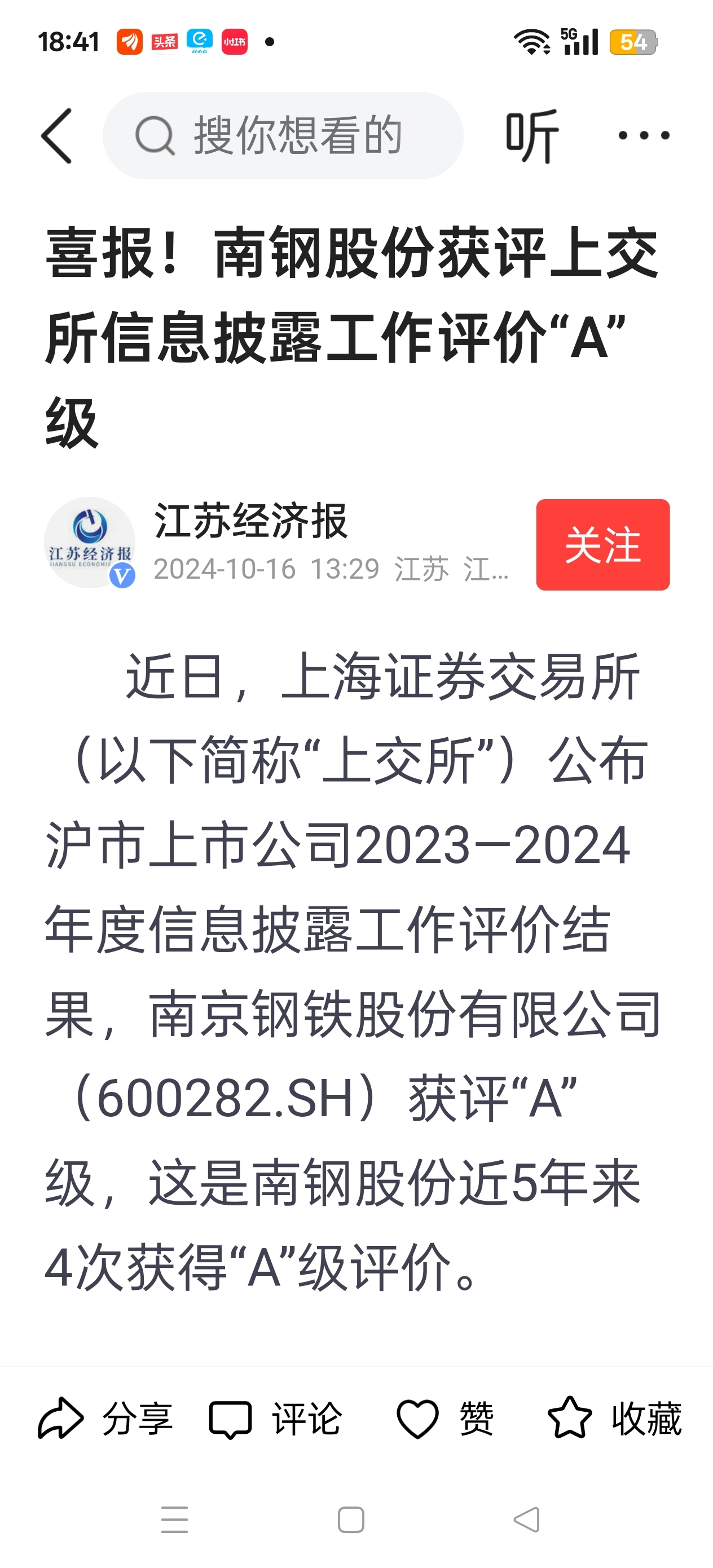 $南钢股份(SH600282)$ 南钢股份去年曾经获得信息披露最高奖A。所以对南钢股份后市看好看坏。从已经披露信息中搜寻蛛丝马迹。