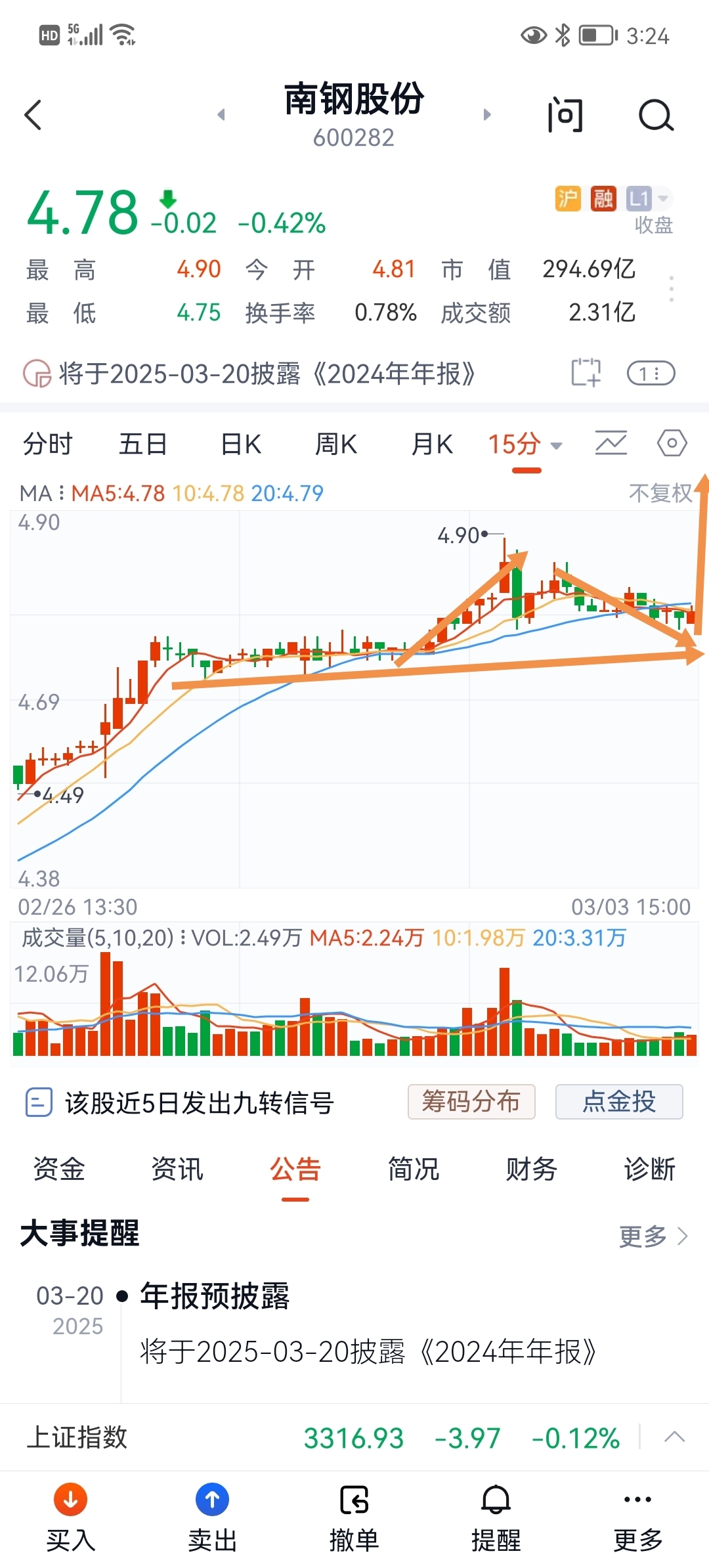 $南钢股份(SH600282)$ 回踩还未到位,到位就上车。图画的很粗糙,就是个大概意思吧!什么叫回踩到位呢?就是回到4.7就下不去了,然后翻身突破4.9。我可不是唱空,我是想上车跟大家共进退