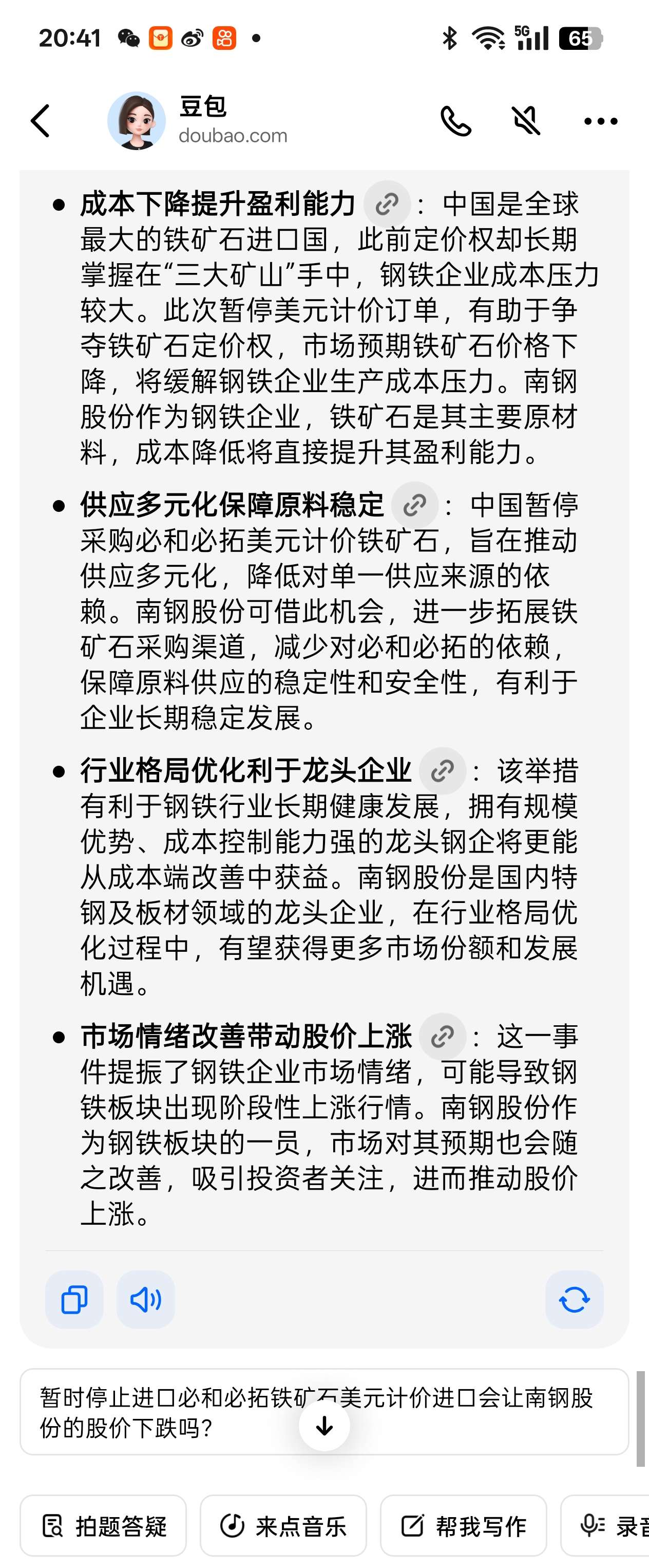 南钢自己有铁矿石,对于停止进口必和必拓美元计价铁矿石,拍手称快。
