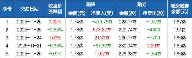 南钢股份:融资净偿还430.75万元,融资余额1.74亿元(11-26)