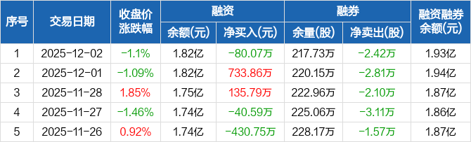 南钢股份:融资净偿还80.07万元,融资余额1.82亿元(12-02)