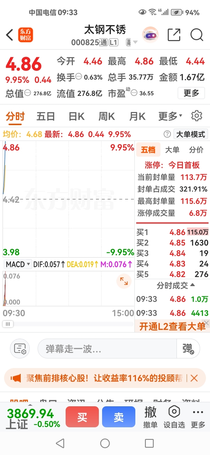 我的太钢涨停了