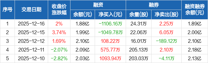 南钢股份:融资净偿还1106.16万元,融资余额1.88亿元(12-16)
