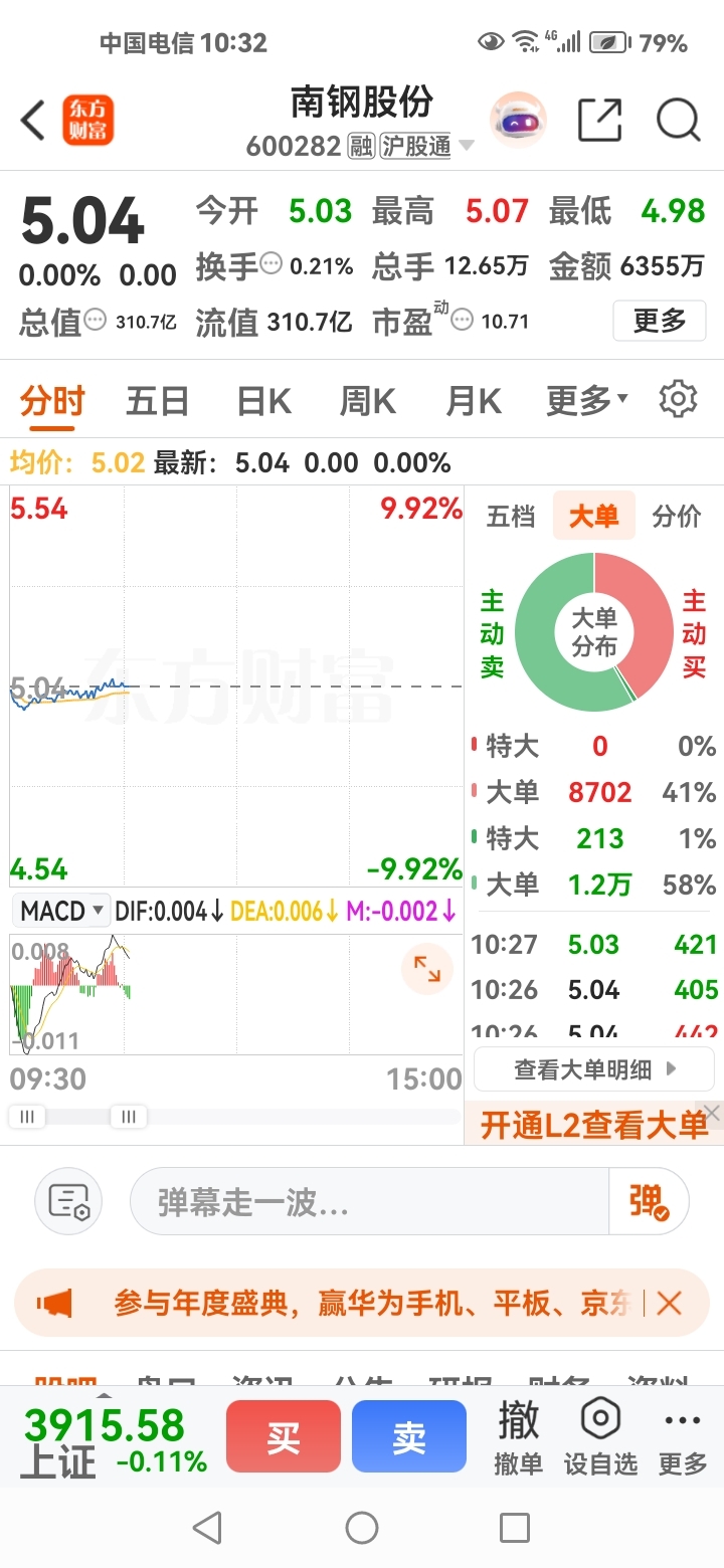 $南钢股份(SH600282)$ 没有主动买盘,都想着甩卖