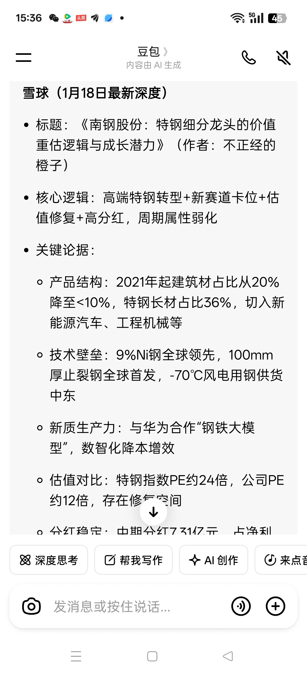 $南钢股份(SH600282)$ 今天雪球有一个大V对南钢股份深入分析,即使按照特钢估值24算,南钢股份目前才12。存在估值修复空间。