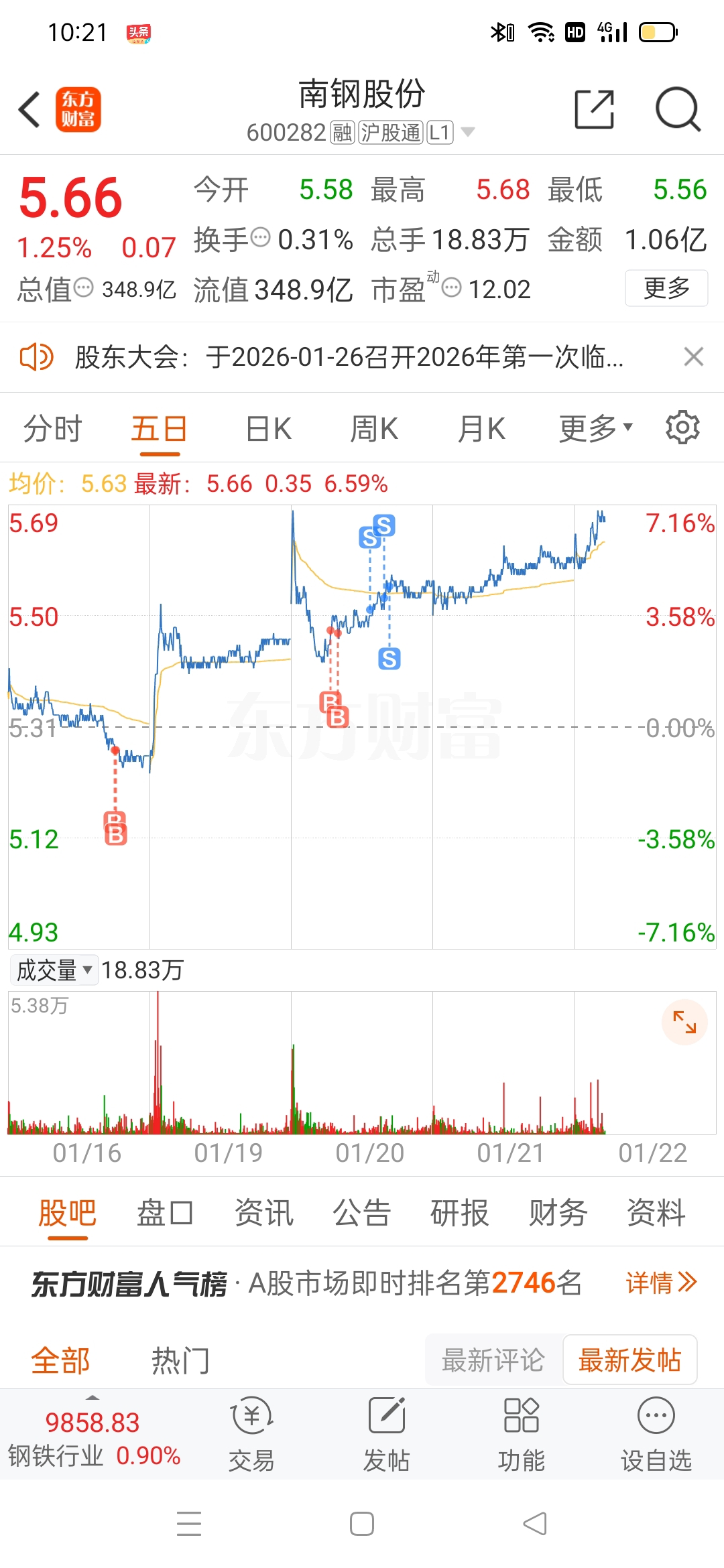 $南钢股份(SH600282)$ 昨天可以买回来,没买,太贪了。所以t+0不是好事,因为你拿不住