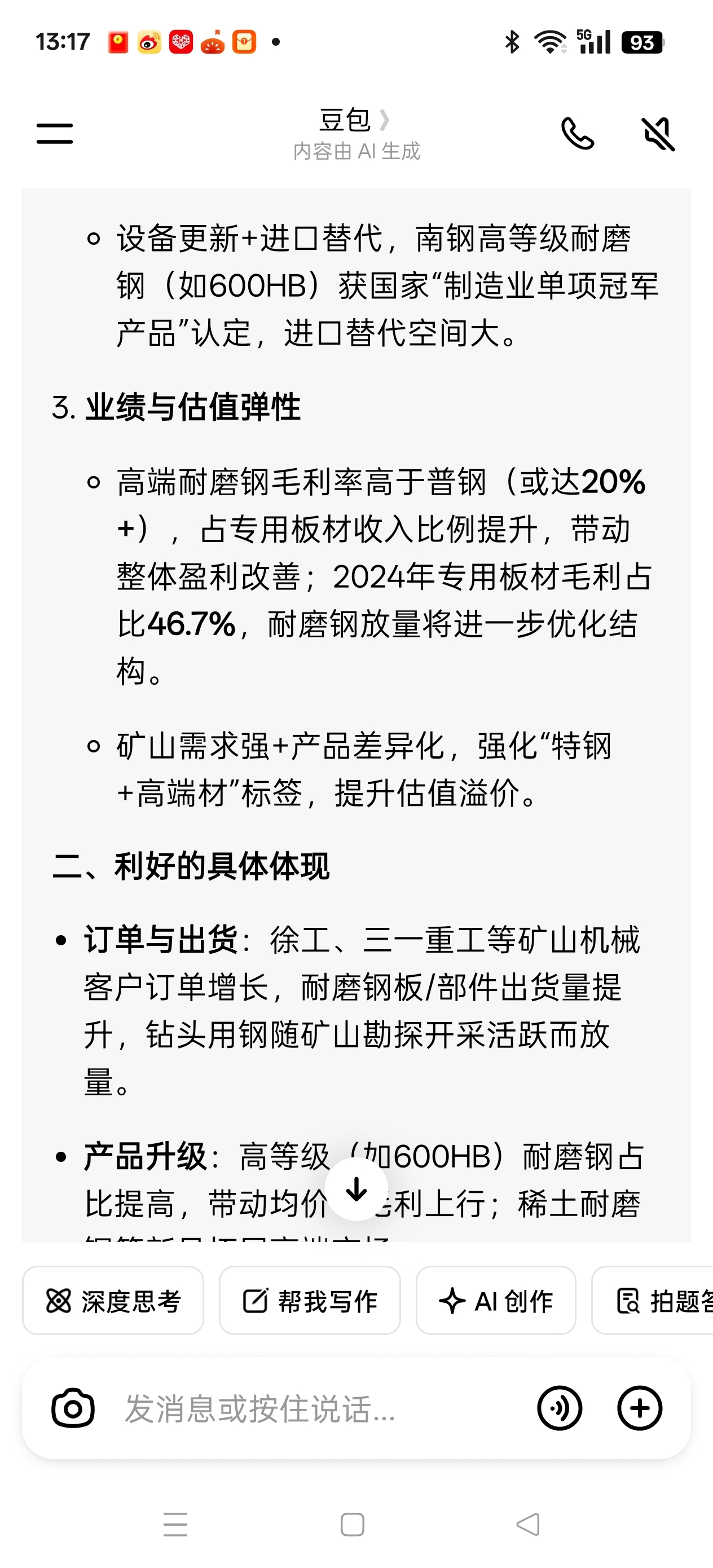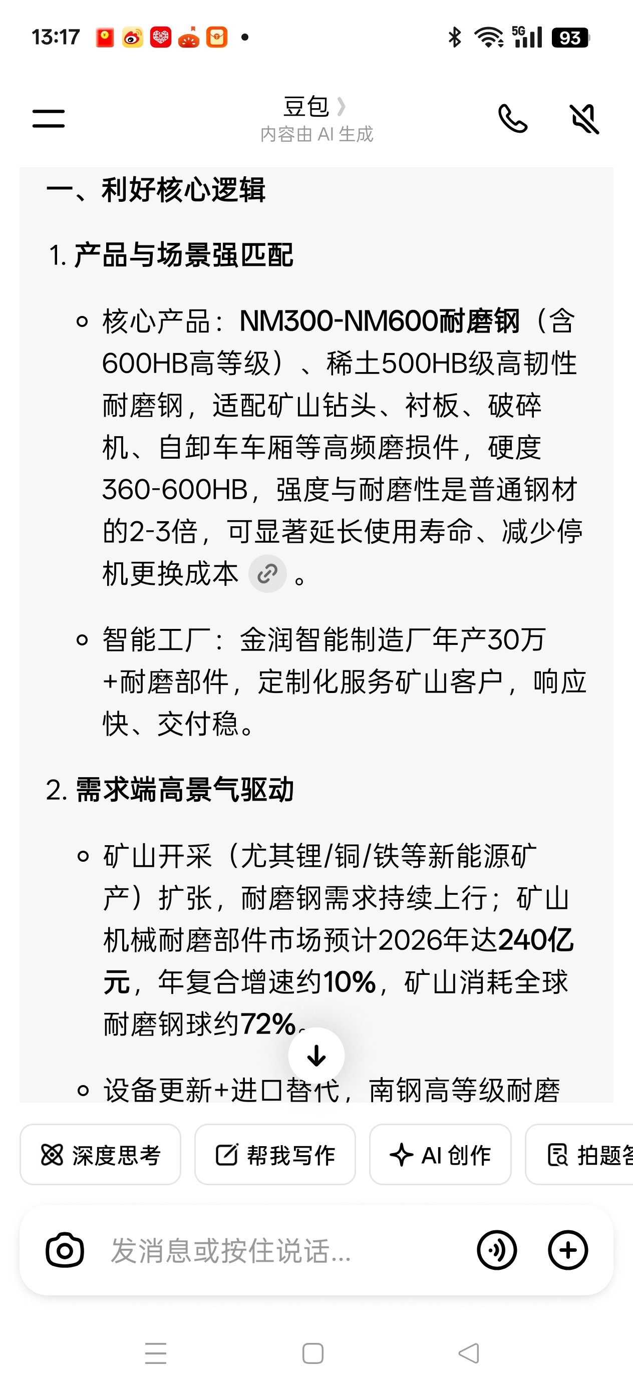 有色金属全球暴涨带动矿山开采,南钢股份耐磨钢需求旺盛。
