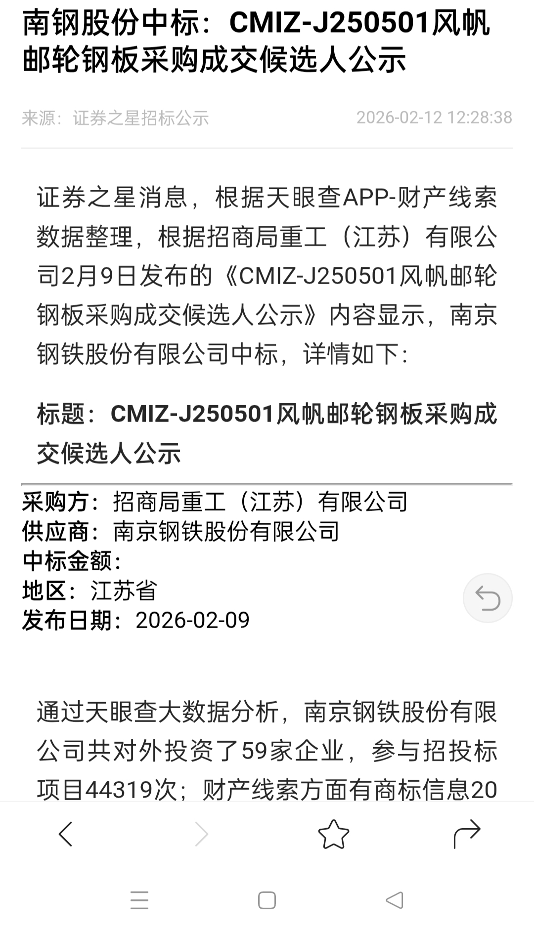 $南钢股份(SH600282)$ 不明白为什么别的公司中标公告,南钢从来不公告,一点市值管理没有