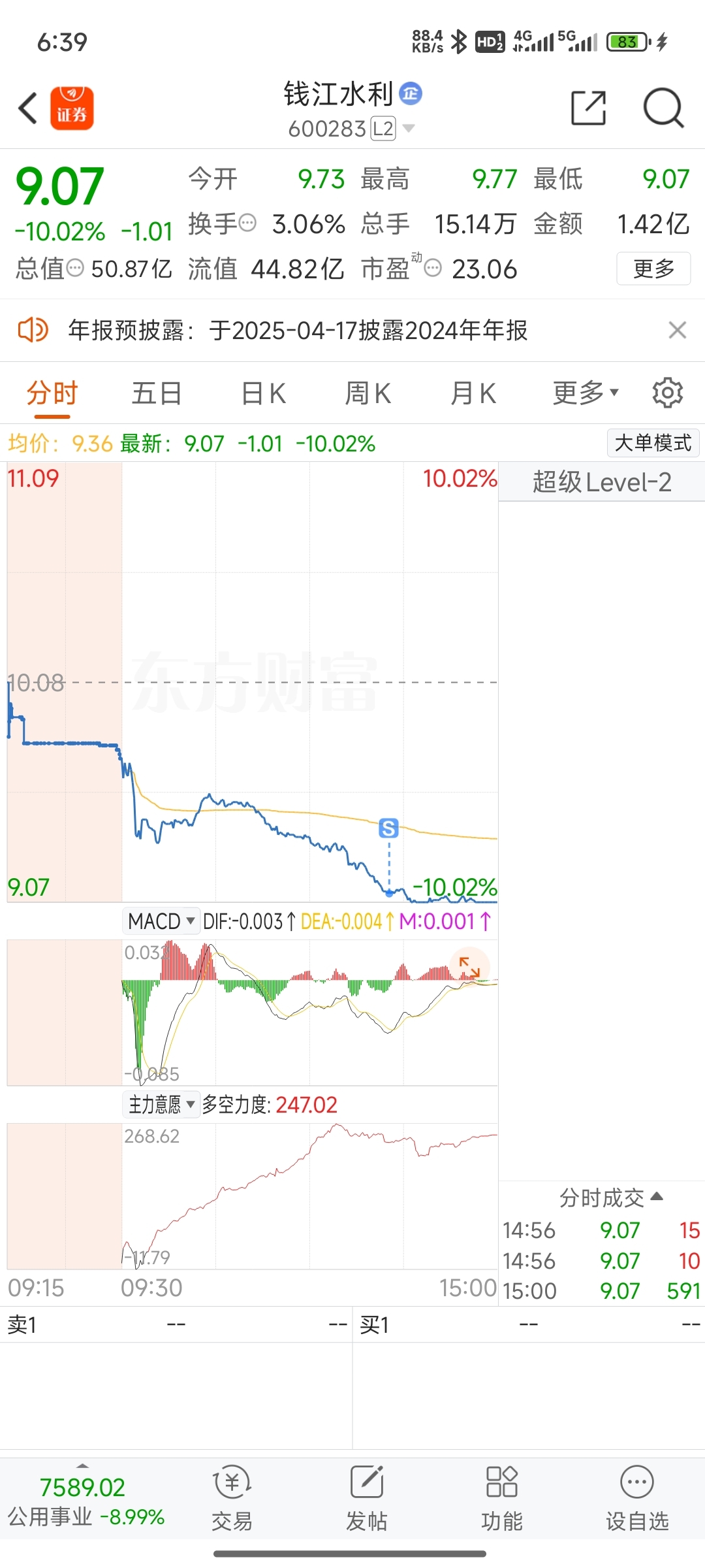 $钱江水利(SH600283)$ 三个点有机会跑没跑,结果另外一只重仓想跑跑不了,就把老钱地板割肉了