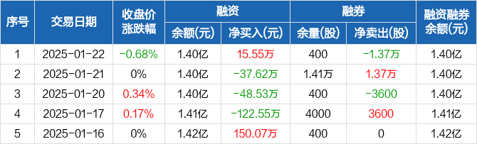 浦东建设:融资净买入15.55万元,融资余额1.4亿元(01-22)