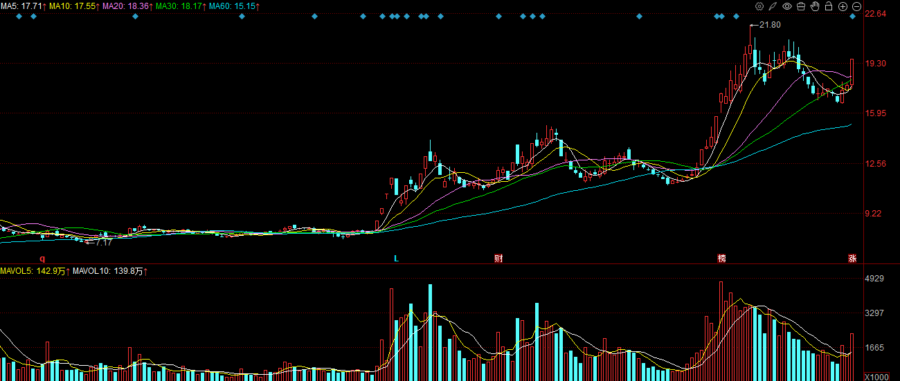 拓日新能002218:最近四个交易日的成交量在明显的放量,昨天虽然是冲高回落,但是短期来看更像是试盘的动作,今天看下方五日线的支撑,能守住那么问题不大,还是可以继续格局,如果破了下方五日线的支撑,则接下来还要继续震荡的预期更大,这样的短线票及时的见好就收很重要。