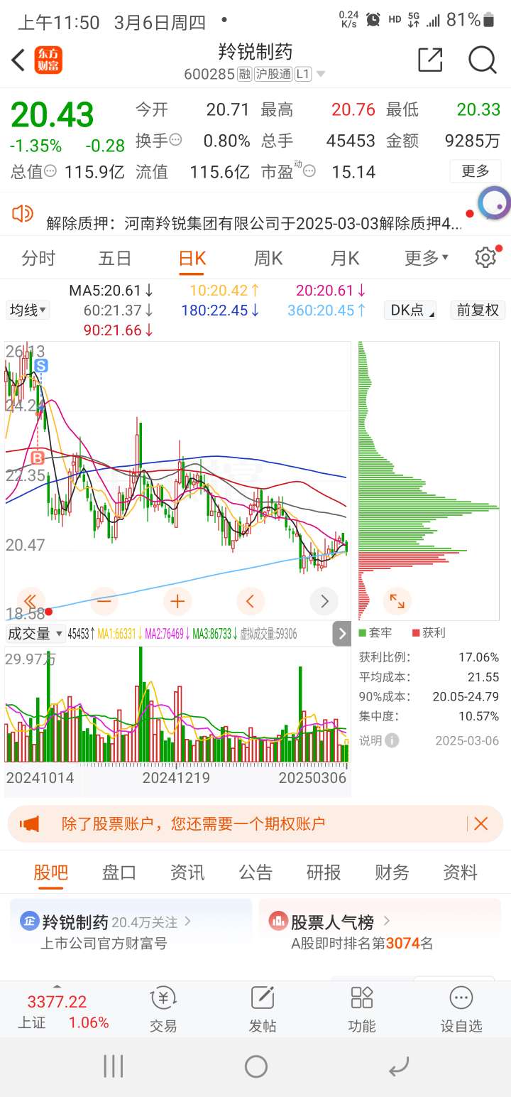 $羚锐制药(SH600285)$ 下午买进