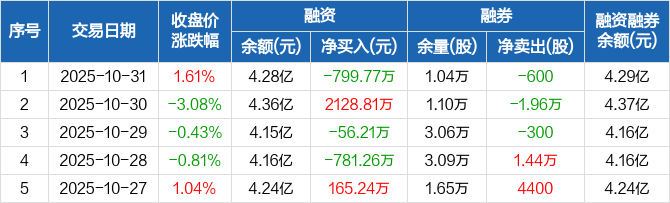 羚锐制药:融资净偿还799.77万元,融资余额4.28亿元(10-31)
