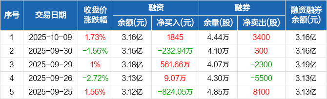 大恒科技:融资净买入1845元,融资余额3.16亿元(10-09)