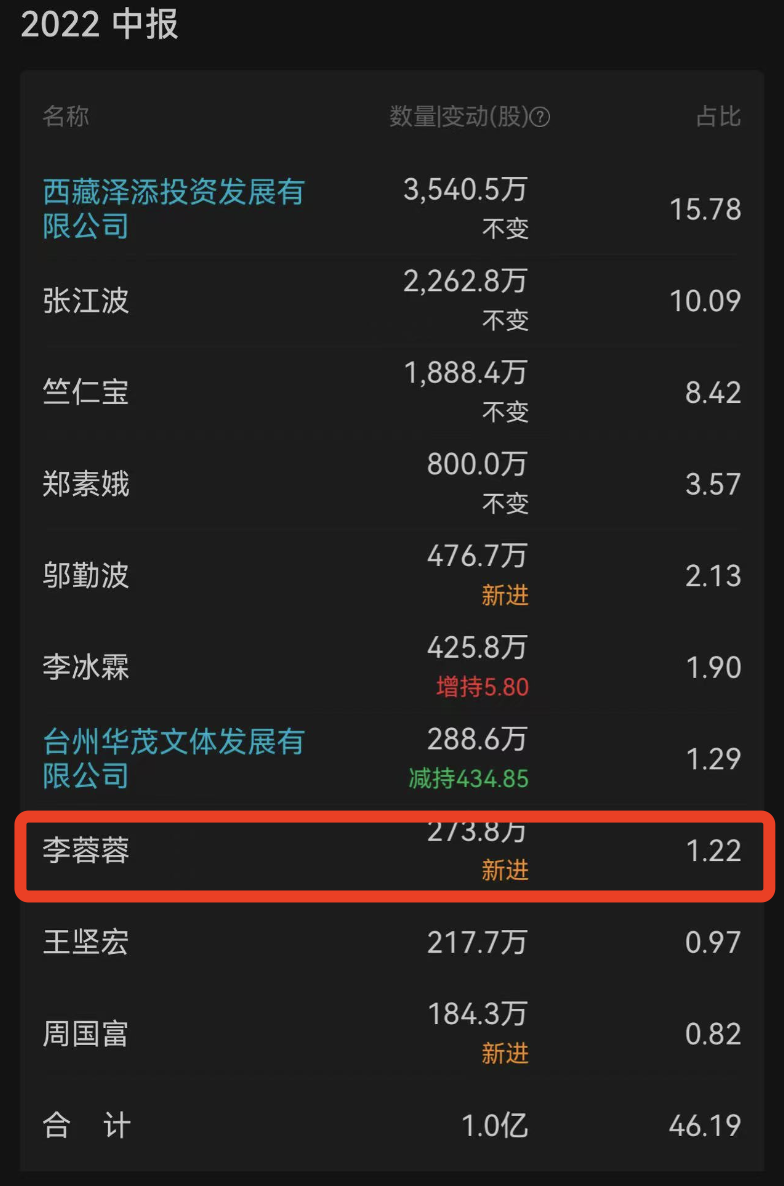 值得注意的是,“李蓉蓉”之名还是徐翔概念股的“老熟人”。2022年中报显示,她曾短暂跻身宁波中百(600857.SH)前十大股东,该公司实控人正是徐翔父亲徐柏良。除此之外,慧辰股份(688500.SH)2024年三季度前十大流通股东名单中,也能看到“李蓉蓉”的名字。