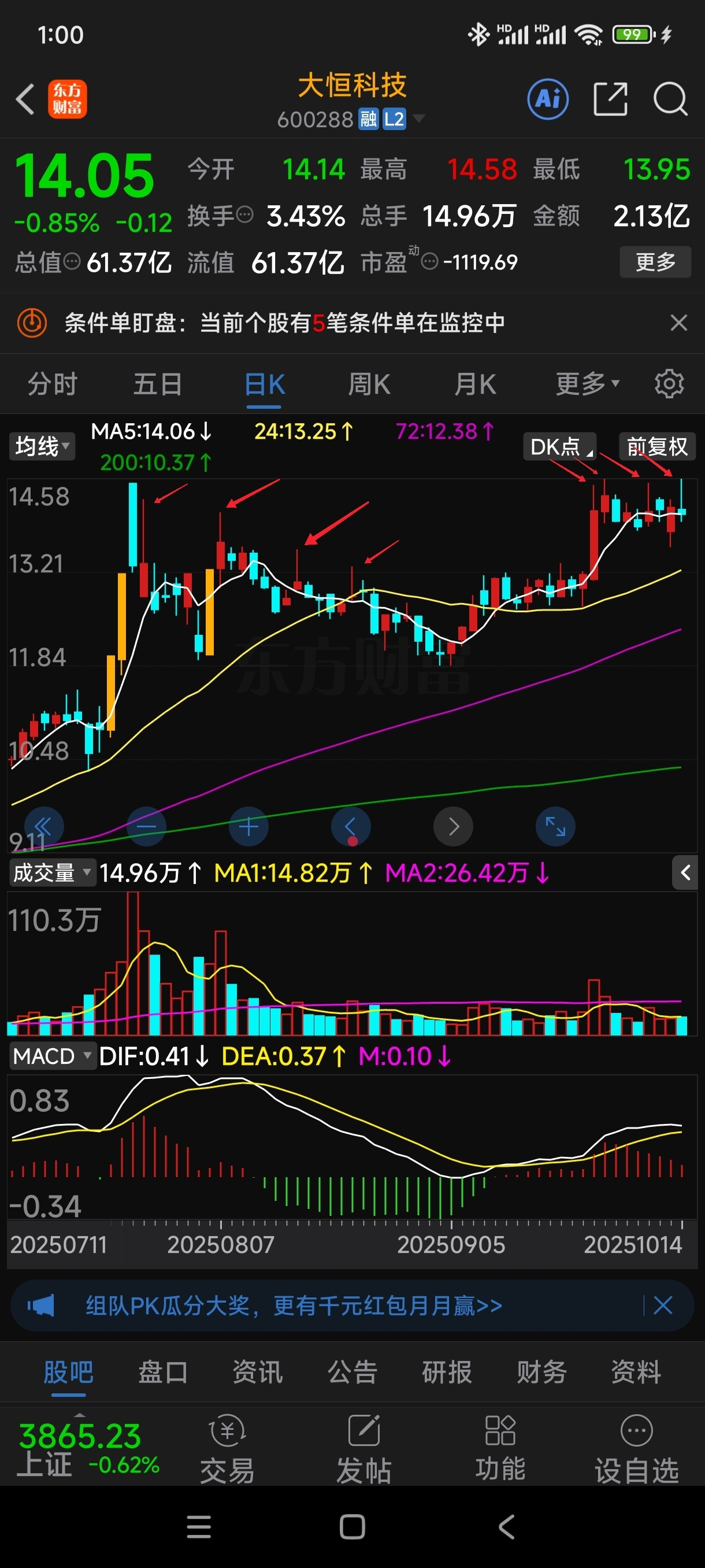 $大恒科技(SH600288)$ 开弓没有回头箭,八根“引魂幡”已现,珍惜手中的筹码!