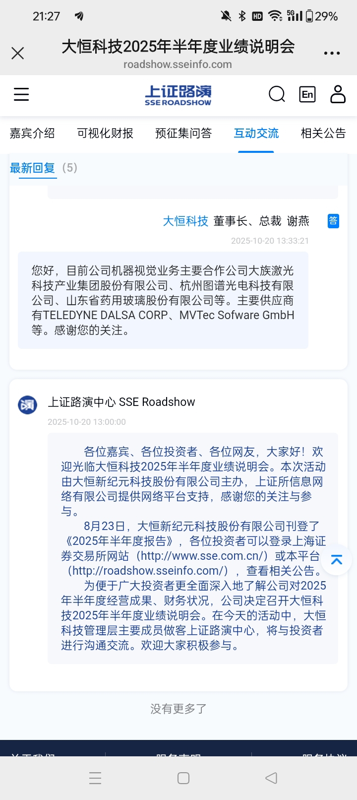 $大恒科技(SH600288)$ 半年度业绩说明会,没亮点!