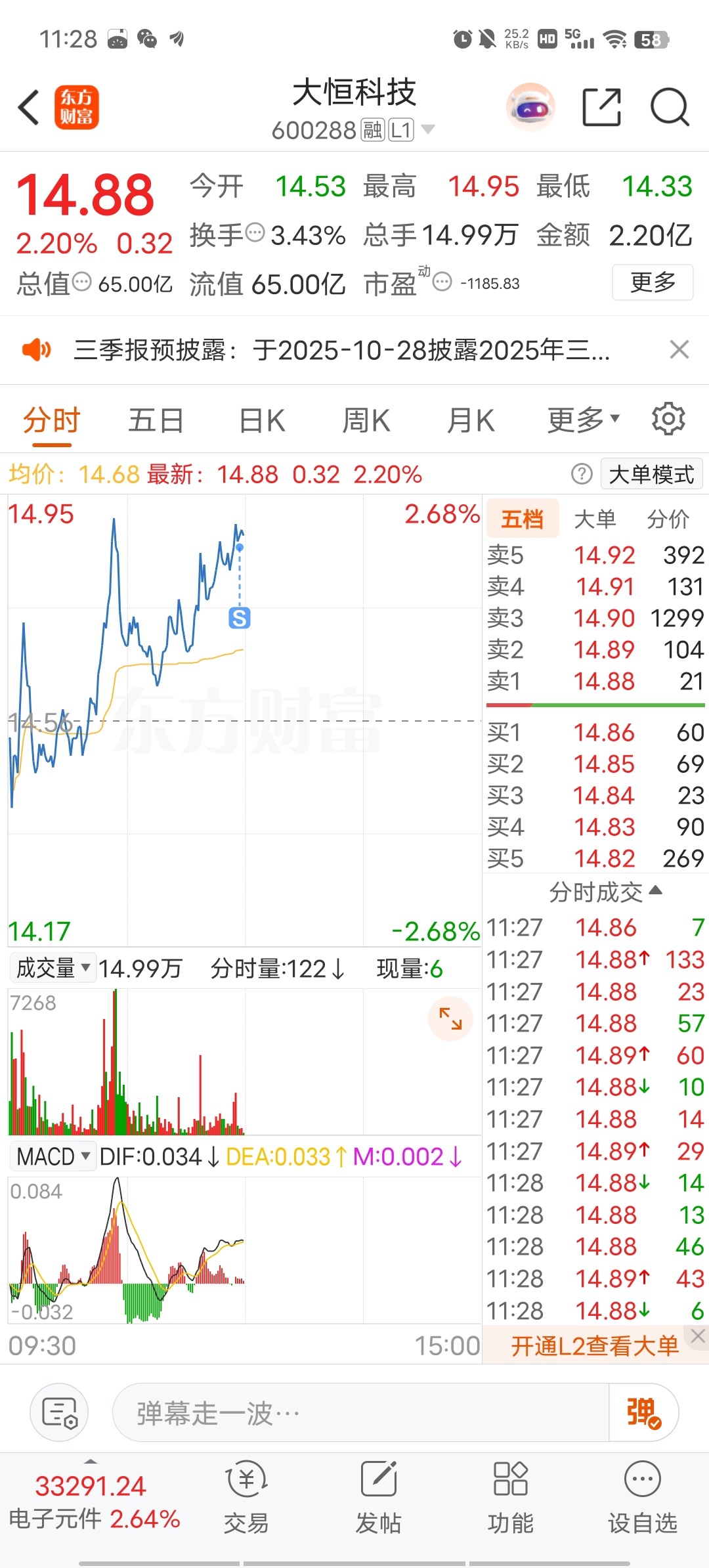 $大恒科技(SH600288)$ 资金还是不太积极,两点再吸回来