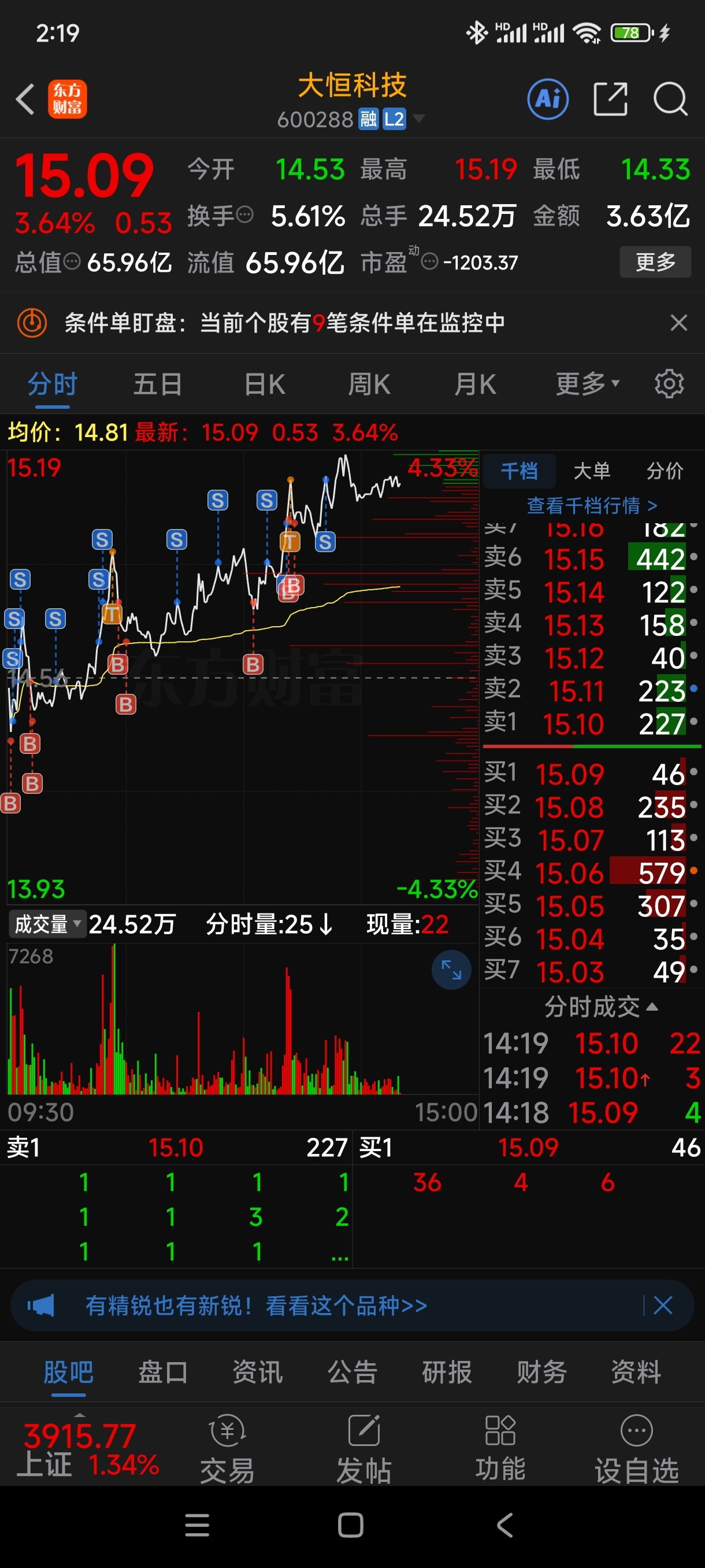$大恒科技(SH600288)$ 小庄加油,我的筹码快打光了。