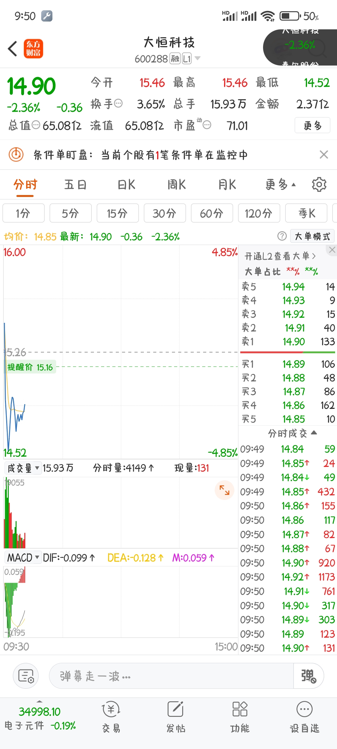 $大恒科技(SH600288)$ 嘿嘿,如此拙劣的洗盘还想洗掉在下,我把条件单防守都撤了,即便是玩崩了被乱杀亦无悔
