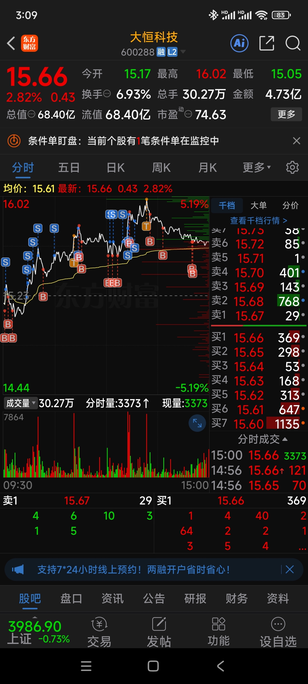 $大恒科技(SH600288)$ 继续持股待涨,看高20.44元!