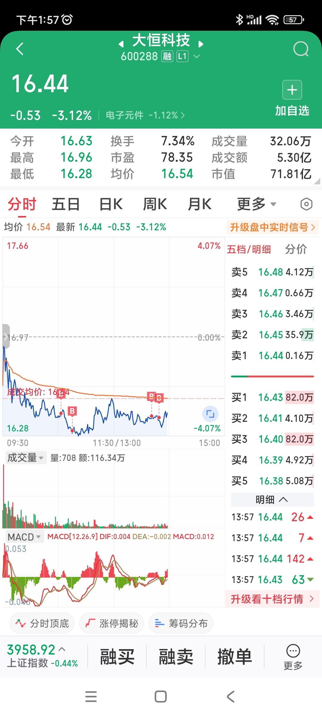 $大恒科技(SH600288)$ 今天只补仓,哈哈哈哈哈